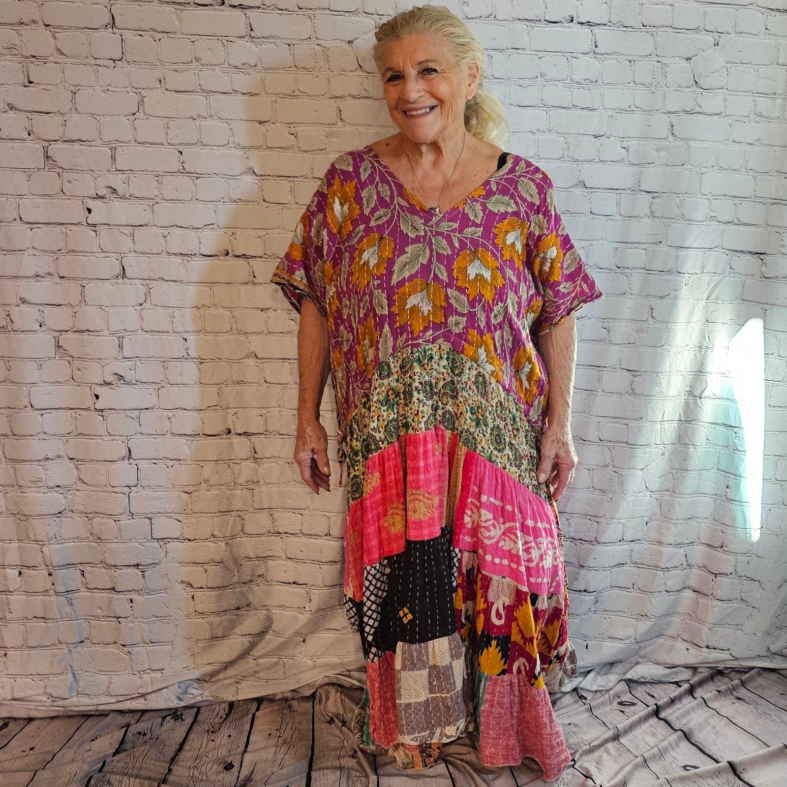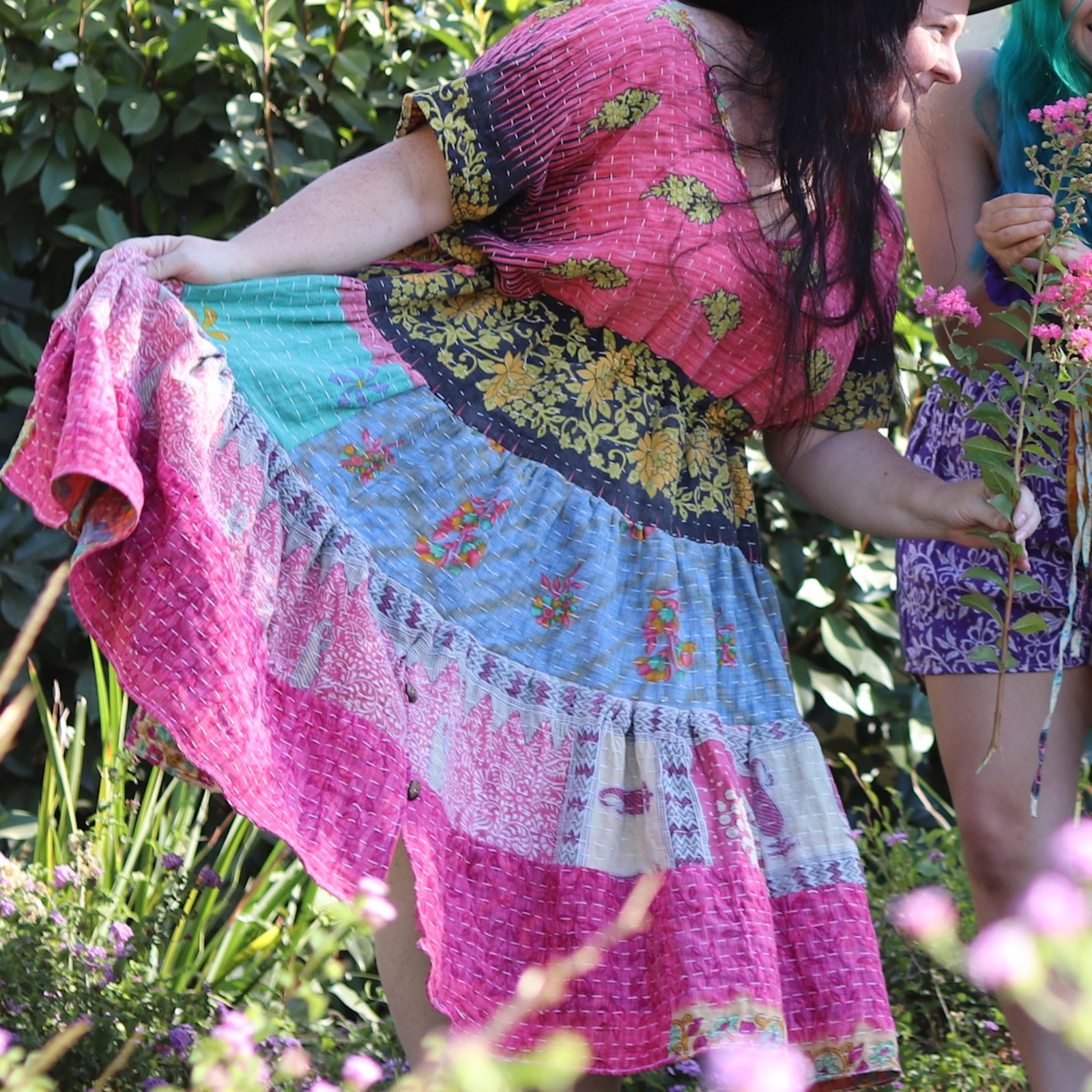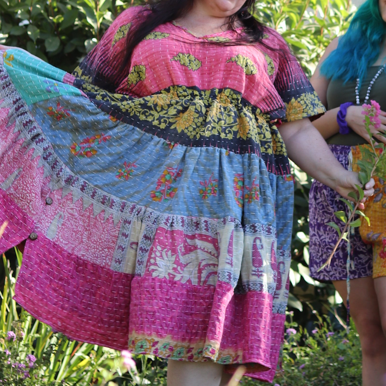 Our Real Fit Gallery shows Wild Kantha clothing on real people. Each piece is tested on a range of bodies and designed to move with you — through every shape, stage, and season of life. Images are for fit reference only; each item is one-of-a-kind.