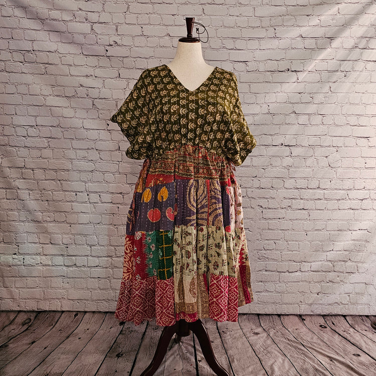 Twillow 34 Forest Whimsy Kantha Midi Dress | Boho Patchwork by Wild Kantha